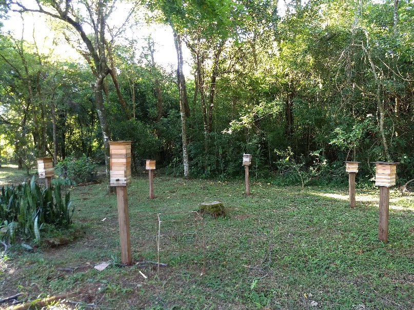 Como se observa en la figura 2, otras colmenas están instaladas individualmente sobre soportes de madera.