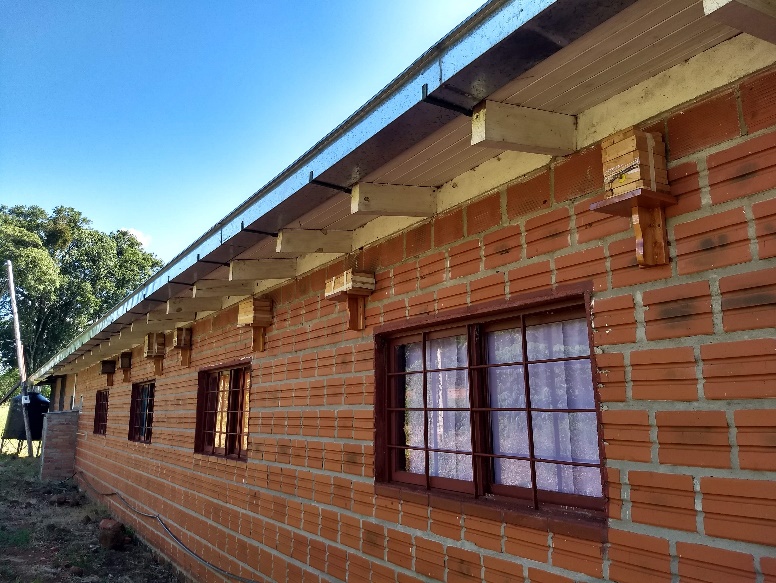 Desde el PROCAyPA también se dan charlas, capacitaciones y colabora con la instalación de meliponarios en instituciones educativas y comunidad de pueblos originarios. En la figura 3, por ejemplo, se observa el meliponario de la comunidad Guaporaity, instalado en el establecimiento que está dentro de la misma.